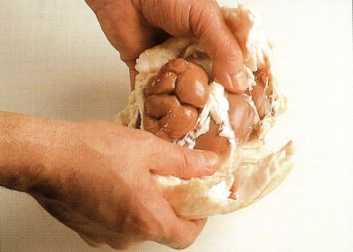 - If the kidney is encased in fat, snip the fat where it is attached to the core of the kidney and pull it away with your hands.