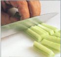 1 For sticks: peel the cucumber, cut it in half lengthwise and, if you like, scoop out the seeds with a teaspoon. Cut halves in several lengthwise strips, then cut across.