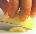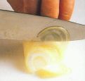 Hold the onion firmly and cut it in vertical slices, guiding the knife with your bent fingers.