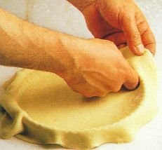 With your forefinger and thumb, press the dough evenly up the sides, from the bottom, to increase the height of the rim.