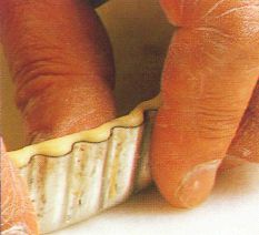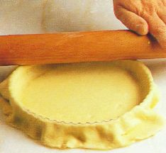 Neaten the rim with your finger and thumb and flute it if you like. Do not let the dough overhang the edge of the pan.