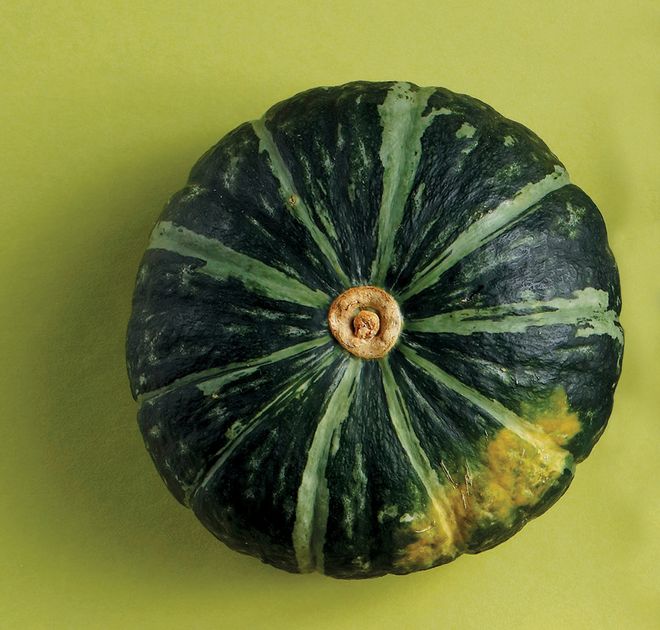 A member of the squash family, the Japanese pumpkin or kabocha is slightly sweeter than other varieties of squash. It has rich yellow-coloured flesh and dark green skin. The skin of the pumpkin is edible except that it may be a bit tough if too thick. If so, thin the skin by peeling with a vegetable peeler.