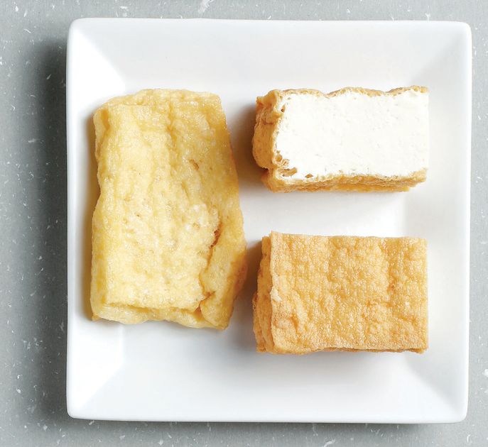 Atsuage is a thick, deep fried tofu. Large blocks of fresh tofu are deep fried until golden brown, giving the atsuage a crisp coating, while the tofu remains soft and smooth inside.