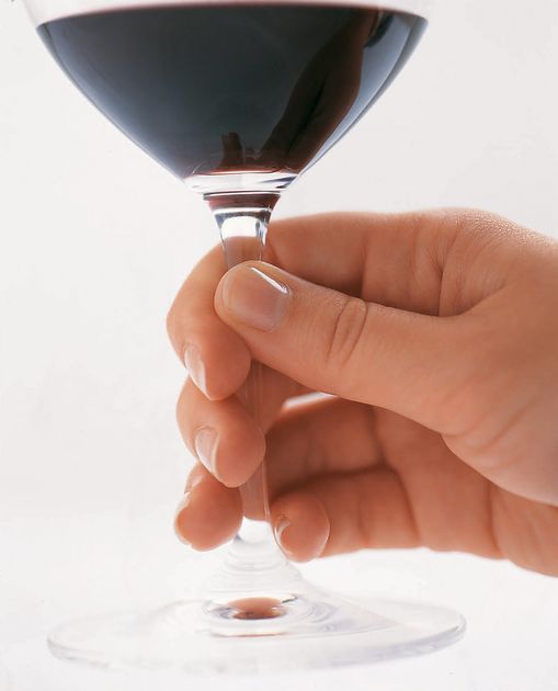 Take the glass by the stem or by the base. This allows you to tilt the glass when looking at it, and to swirl the glass. If you prefer to swirl on a flat surface, hold at the base.
