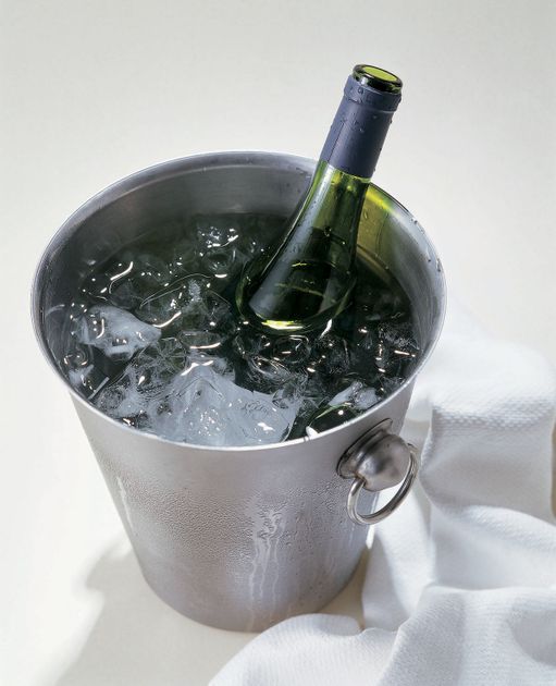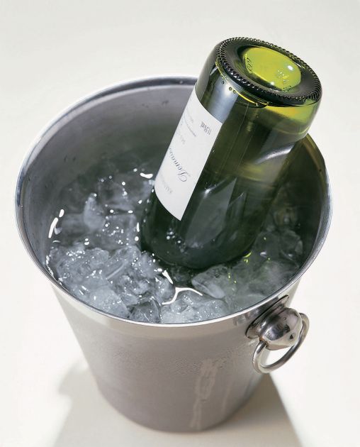 Return the bottle to an upright position and chill for a further 5 minutes. Turn the bottle in the bucket occasionally to ensure the entire bottle is kept chilled. To serve, wrap a napkin around the bottle to prevent drips, pour, and return the bottle to the bucket to stay cool.