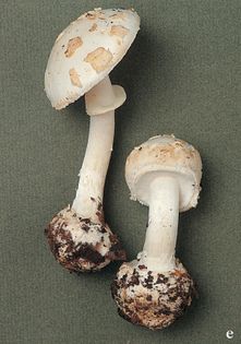 White False Deathcap Amanita citrina var. alba (Gillet) Rea (illustrated 30% life size) This is a frequently occurring form of A. citrina (above), which differs only in being white throughout. It is less strong-smelling than A. citrina, but still disagreeable to taste, and although not poisonous it is still best avoided, since it is easily confused with the deadly Amanitas.