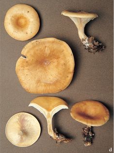 Tawny Funnel Lepista flaccida (Sowerby) Pat. syn. Clitocybe flaccida (Sowerby) P. Kumm (illustrated 55% life size) Cap 5–9cm across, flattened-convex at first, then broadly funnel-shaped; pale ochraceous-buff, darkening to tawny with age. Stem 25–50×5–10mm; paler than the cap; becoming hollow, woolly at the base. Flesh pale cream to tan; thin. Gills deeply decurrent, narrow, crowded; whitish-yellow. Spores 4–4.5×3.5–4¼, subglobose, minutely roughened. Spore print white. Habitat in leaf litter in deciduous or coniferous woods, often in clustered groups; summer to early winter. Very common. Edible poor. Note many mycologists consider C. inversa (Scop.) Quél. to be a synonym of this, others consider them separate species.