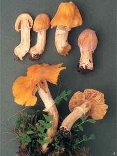 The Gypsy Rozites caperatus (Pers.) P. Karst. (illustrated 50% life size) Cap 5–10cm across, convex then expanded and umbonate; ochre-buff to ochre-brown; covered in silky, white, cobwebby fibrils, more densely at the centre. Stem 40–70×10–15mm, slightly swollen at the base or bulbous, whitish; ring whitish, narrow, spreading. Flesh whitish, tinged ochre; taste and smell mild and pleasant. Gills free; pale clay. Spores 10–13×8–9¼, elliptical, finely warted. Spore print ochre-brown. Habitat on damp acid soils, usually in open situations amongst conifers and heather; autumn. Confined to the Highlands of Scotland; virtually unknown in the south of England. Occasional, vulnerable on Red Data List. Edible. Note one day this may move to be part of Cortinarius.