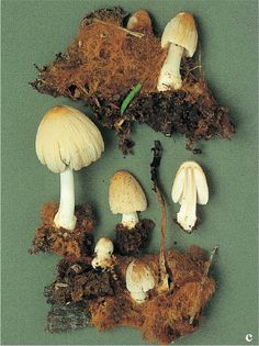 Firerug Inkcap Coprinus domesticus (Bolton) Gray (illustrated 55% life size) Cap 1–3cm high, ovate at first, expanding convex or bell-shaped, splitting at margin; pale buff, with darker tawny centre; powdered at first with whitish or buff remains of veil, later smooth and becoming grooved from the margin inwards. Stem 40–155×2–10mm, swollen at base; white, tinged buff towards the ridged base, often arising from a rust-coloured mat of mycelium. Flesh smell none. Gills free; white at first, rapidly purplish-date, then black and deliquescing. Spores 7.5–10×4–5¼, cylindrical-elliptical. Spore print dark brown. Remnants of veil on cap formed of chains of globose or elliptical cells, which are thin- to thick-walled, hyaline or golden-brown, and often verrucose. Habitat on dead wood of broad-leaved trees; late spring to summer. Frequent. Not edible.