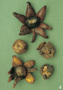 Barometer Earthstar Astraeus hygrometricus (Pers.) Morgan syn. Geastrum hygrometricum Pers. (illustrated 50% life size) Fruit body 1–7cm across, globose; outer wall ochraceoustan to dark brown, splitting into 6–15 pointed rays on maturity when moist, closing and becoming hard and leather-like when dry. Spore sac 1–3cm across; pallid to dark greyish; thin, papery, opening by a slit or tear forming an irregular pore. Spores 7–10.5¼ in diameter, globose, finely warted. Spore mass cocoa-to cinnamon-brown at maturity. Habitat on dunes or sandy soil in woods, developing just below surface, becoming exposed at maturity; autumn, but persisting in good condition for up to a year. Uncommon, vulnerable on Red Data List. Not edible.
