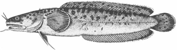 Maximum length just over 50 cm. In life, the upper part of this fish is of a red or salmon colour, marked with brown blotches (as shown in the drawing, together with the three barbels, misnamed ‘beards’). So it is easy to identify. But it and its close relations (of which I mention only the four-bearded rockling, Rhinonemus cimbrius (Linnaeus), since it occurs on both sides of the Atlantic) have constituted an intractable, albeit trivial, problem for taxonomists, who have all but buried the small creatures under a mass of competing scientific names. All the layman need know is that the rocklings all have a very low first dorsal fin (just visible in the drawing), that they may have three, four or five barbels and that they have no commercial importance on either side of the North Atlantic.