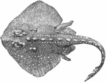 CUISINE The starry ray is eaten in northern Europe, where it has some commercial importance, but is only used for the production of fish meal on the American side. However, not all Americans neglect the rays and skates. Euell Gibbons, in Stalking the Blue-eyed Scallop, drew the attention of his readers to Leucoraja erinacea Mitchill, the LITTLE or COMMON skate, the species which North American anglers are most likely to capture. I show a drawing of this species on the right. Its French Canadian name is raie hérisson. It grows to a length of 60 to 70 cm only, but Gibbons, ever alert to unused foodstuffs, pointed out that it is not merely edible but good, and that in his experience its wings, suitably cut up, could be treated like scallops. I have been told, however, that this practice is more often carried out on Leucoraja ocellata (Mitchill), the winter skate, or Gymnura micrura (B. and S.), the smooth butterfly ray.