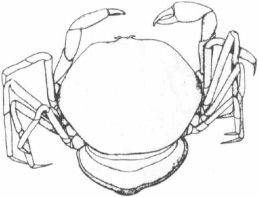 The maximum width of these tiny crabs is only about 1½ cm. At an early stage in their lives, both males and females invade the shells of oysters, mussels or other bivalves. The females stay put, but the males emerge in their first year and swim round looking for a female, snug in her bivalvular home, with which to copulate. The experience of sexual intercourse within the shell of a living oyster, which shakes the mind if translated into human dimensions, seems to be too much for it, since it then dies. However, the females may live for as long as three years.