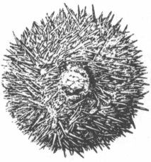 Up to about 8 cm in diameter. There are numerous species of sea-urchin. This one has a circumpolar distribution. Its range in the Atlantic extends down to the English Channel and to New Jersey. Europeans are more familiar with Paracentrotus lividus (Lamarck), the main edible species of the Mediterranean, where it is common to see basketfuls on display, with one urchin cut open to reveal the star-shaped orange ovaries which are the edible part. These can constitute as much as 10 to 20 per cent of the weight of the creature; but even so they make tiny mouthfuls. The main demand for them is in France, which imports some from Ireland, and in Japan, which has been experimenting with shipments from North America. Consumption in North America itself is very small, although sea-urchins from the Bay of Fundy have been marketed in New York. Strongylocentrus droebachiensis is abundant on the coast of Maine, but the creatures are there called ‘whores’ eggs’ and regarded with horror. It does not seem to be marketed in northern Europe.