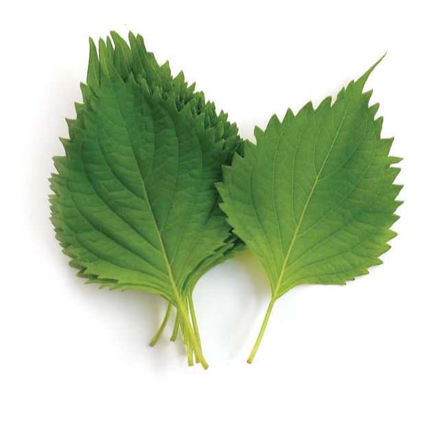 There are two types of shiso available in Japan: green (ohba, aoba, aojiso) and red (akajiso). Shiso is part of the mint family and has a basil-like aroma and taste. It is rich in vitamins and minerals. It is commonly used as a garnish for sashimi as it is thought to help preserve and sterilise foods. Red shiso is used to give umeboshi a red colour. The flower buds from the shiso plant can be used as garnish as well. Shiso leaves are in season in summer but you will be able to find them at supermarkets all year round. The best way to store shiso leaves is to wrap them individually with wet kitchen towels and store in an airtight container in the refrigerator.