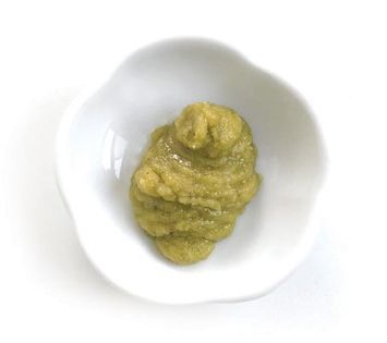 Wasabi, also known as Japanese horseradish, originates from Japan. It grows along shallow rivers near the mountains. Since it requires very clean water to thrive, it is considered one of the most difficult plants to cultivate. Most wasabi sold in powdered or paste forms are made from green-tinted horseradish. Grated wasabi root is used as garnish and seasoning. The leaves and stems of the wasabi are also eaten as pickles and fried in batter. Wasabi root has a distinctive spiciness on the nose but it is sweet in the mouth. Since the heat and fragrance disappears when wasabi is mixed with soy sauce, I don’t recommend adding soy sauce to wasabi when eating sushi and sashimi. To enjoy the taste of wasabi, smear some onto sushi or sashimi and then dip it into soy sauce. The best kinds of wasabi root is bright green and feels heavy in the hand. To store fresh wasabi root, wash thoroughly under cold running water, wrap with a damp kitchen towel and cover with cling wrap. Keep in the refrigerator for up to 2 weeks.