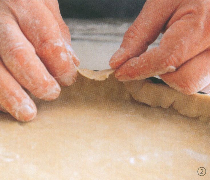 For flaky doughs, use scissors, a dough scraper, or the back of a paring knife to trim all but 1.25cm of the excess dough . Fold this dough back into and against the side of the tin to reinforce it and to provide a little extra dough to make up for eventual shrinkage .
