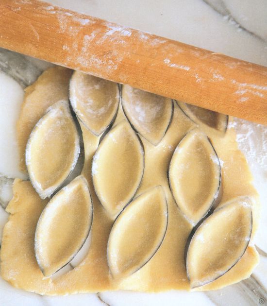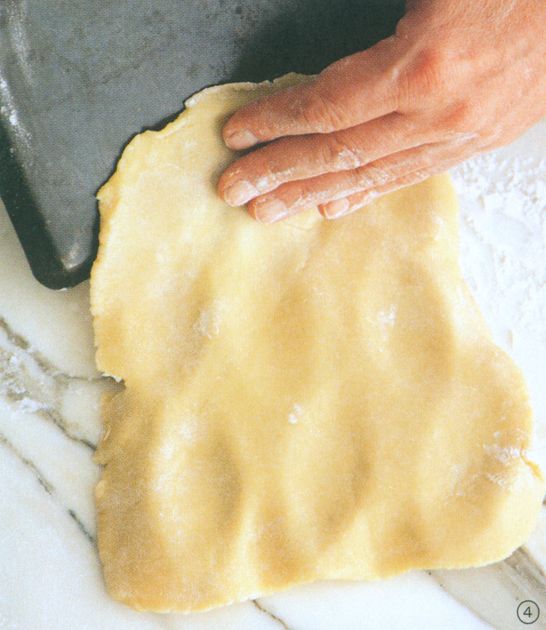 Start with steps 1 and 2 as for Forming Miniature Round Crusts and slide the dough to a lightly floured flexible cutting board or baking tray.