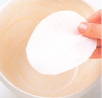 Place the mixture in the basin and hollow the surface slightly with the back of a wet spoon. Place the foil, paper-side-down, across the top and tie string securely around the rim and over the top to make a handle.