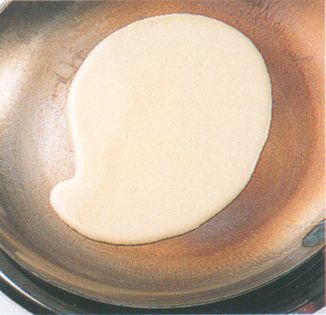 Over medium heat, melt some clarified butter or oil in a 15-17 cm (6-7 inch) heavy-based or non-stick pan. When a haze forms, pour out any excess butter.