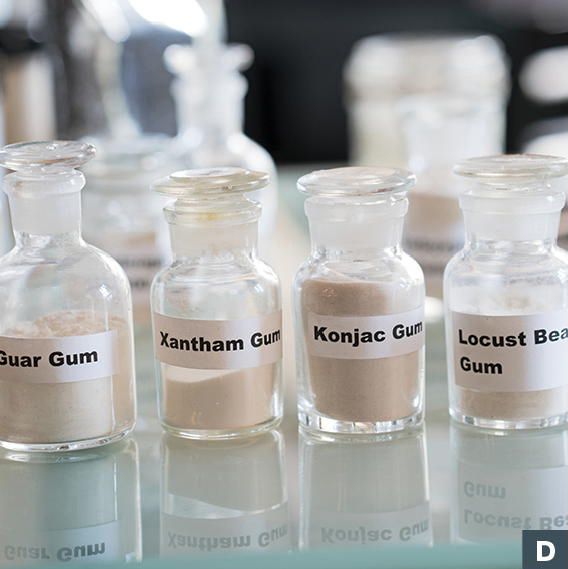 is best used in combination with other thickeners; if not, at higher concentrations it tends to develop a slick mouthfeel. It can be dissolved in either hot or cold water. It makes a stronger gel when combined with agar, but in sauce making this is largely irrelevant. When used as a thickener, it typically is used in concentrations of 0.4% to 0.9%. When being used as an emulsion stabilizer, the percentage is lower (0.1% to 0.6%). Guar gum hydrates in both cold and hot water.