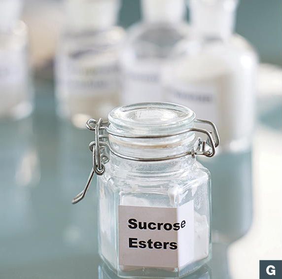 Related to sugar but not sweet and related to alcohol but not alcoholic, sucrose esters (G)