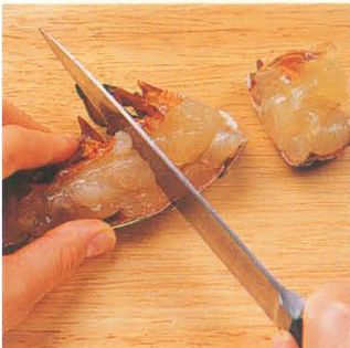 Using a large sharp knife, cut across the tail into three or four pieces.