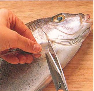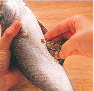 Make a small cut at the bottom of the stomach, then cut along the underside, stopping just below the gills. Pull the innards out and discard. Rinse the inside of the fish out.