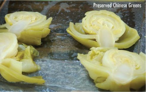 There are many names for this Chinese pickle used throughout the ethnic Chinese communities of Vietnam, Malaysia, Singapore, and Thailand. They’re called “preserved mustard greens” and “swatow mustard cabbage,” among other things. Sold in vacuum-packed plastic pouches, these salty greens are primarily used in soups. After draining their brine, give them a quick rinse to remove excess salt before cooking with them. Vietnamese: dưa cải chua