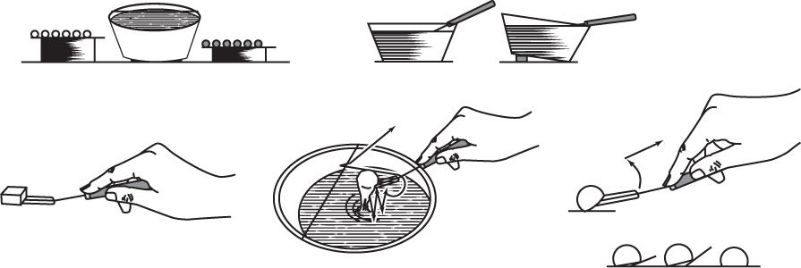 – Keep your pointer finger on top of the dipping fork for stability.