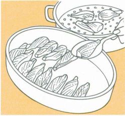 Cut the base and stalks off 4 large bulbs of fennel, then slice lengthwise into quarters, or sixths if very large. Steam or boil the fennel until soft, and drain, then arrange the pieces in a single layer in a shallow, lightly greased gratin dish, with their rounded sides facing upwards.