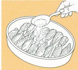 Dribble 5–6 tablespoons olive oil over the fennel, sprinkle with 2 large finely chopped garlic cloves, 40-50g (1½-2oz) grated Parmesan cheese, crushed sea salt and plenty of black pepper. Bake at 200° C, 400°F, Gas Mark 6 for 20–30 minutes, until the surface is well browned.