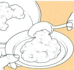 Remove the pan from the heat while the eggs are still lightly set (they will go on cooking in the hot pan) and continue to stir until thickened. Serve at once.
