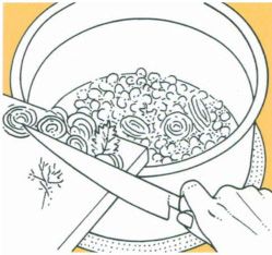 Put the soaked pulses into a saucepan and cover with at least 4 times the volume of cold water. Add herbs, onion slices or diced carrots. Bring to the boil. Boil hard for 10 minutes and skim off any scum. Reduce to a simmer, cover and cook until tender (left). Top up with boiling water, if necessary. Drain, discard the flavorings and season. Toss with olive oil or vinaigrette if serving cold in salads.
