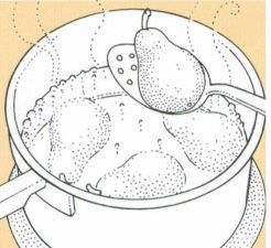 Poached fruit is cooked very gently in a light syrup so it still holds its shape. It can be eaten hot or cold, with or without its syrup and makes a simple but elegant pudding. Firm fruit such as pears, apples and plums hold their shape best when poached, but with juicy fruits you can use a heavier sugar syrup which delays the moment when they begin to collapse. Lemon juice added after cooking counteracts the sweetness.