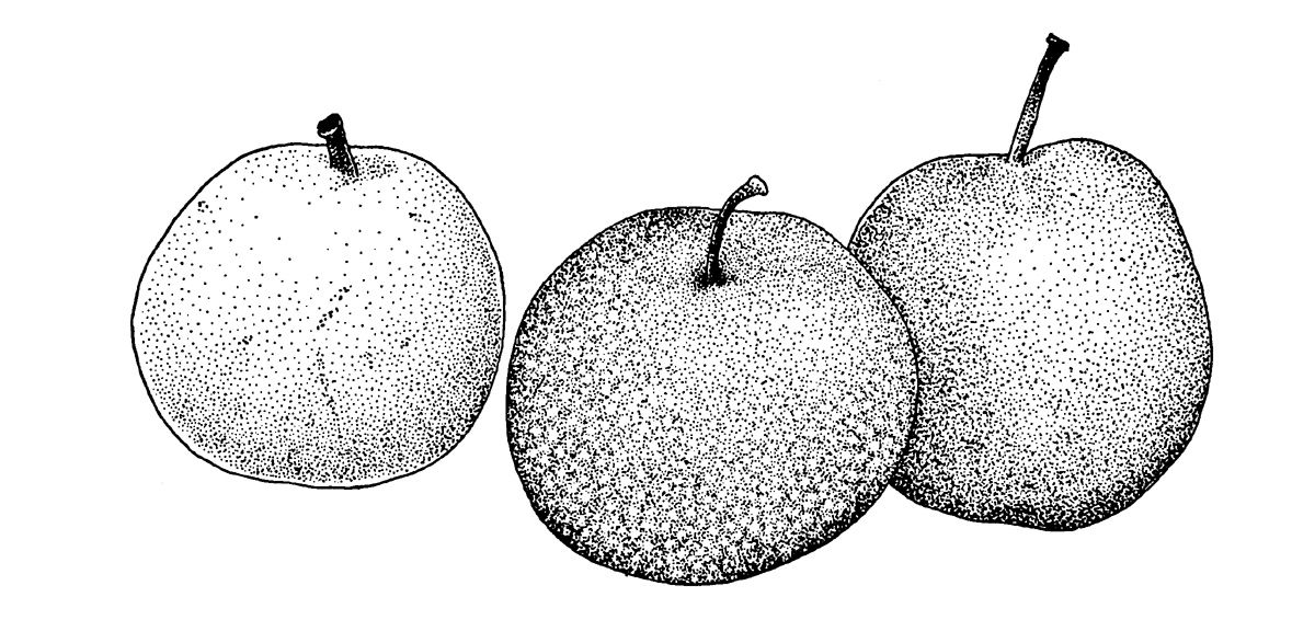 Each time you meet up with an Asian pear in the market it seems to look little like the last. You’ll find a wide range of seemingly disparate fruits, from petite and chartreuse to mammoth and brown. They may be smooth-skinned and lacquer-like, or, more commonly, sprinkled with a confetti of russeting. While there is much variation among the types of the fruit, the basic characteristics are as follows: Asian pears are crunch and juice, so crisp-firm they can be cut paper-thin, their nectar welling up and pouring off each slice. They are lightly sweet, low in acid and aroma, mild to bland in flavor, and granular in texture. If you cook them, they will take longer than “regular” pears. Asian pears are ready to eat when you buy them, and can be stored for a long period. With the exception of Ya Li and Tsu Li, two Chinese varieties (both yellow-green), Asian pears sold in the United States are round.