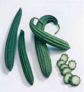 Also angled luffa, ridged gourd, Chinese okra, silk squash, tori or to ray (Indian), see gua and variations (Chinese), patola (Philippine)