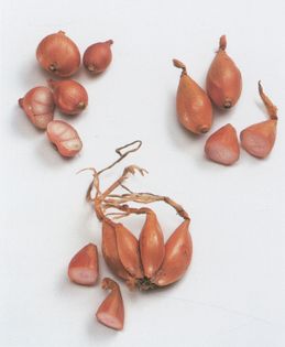 Towering banks of pearly pink shallots virtually define the street markets of Southeast Asia, where more shallots are grown than anywhere else in the world. In France, Belgium, and the Netherlands, market stalls overflow with a subtle selection of these bulbs: from gray to red-copper, from grape- to plum-size. Shoppers buy them by the pound, not the ounce, and carry them home in baskets, not in little net sacks like party favors. In the lands where they grow, shallots are served as a vegetable—not only in sauces, their familiar culinary habitat.
