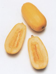 Spaghetti squash or Vegetable Spaghetti (Cucurbita pepo) was growing in various places around the United States before the beginning of the 20th century, but it was not permanently accepted until the Sakata Seed Corporation refined it, and marketing master Frieda Caplan (the formidable founder of Frieda’s, the specialty produce company) brought it to America’s attention. (It is still not to everyone’s taste. As the gardening writer Sylvia Thompson observes: “With every other squash, the aim is to get rid of the fiber in the center. Spaghetti squash is where all those banished fibers went.”)