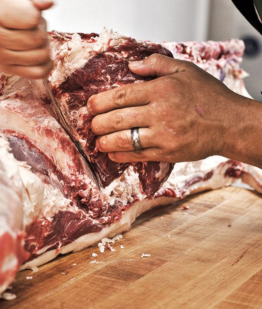 Carefully pull back the butt end of the tenderloin from the sirloin, making small cuts and leaving behind as little meat as possible.