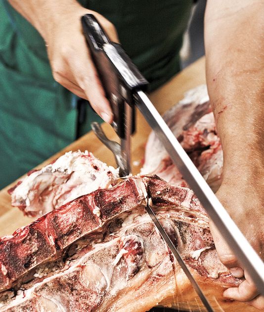 Follow your previous cut with the saw to free the short loin section from the sirloin.