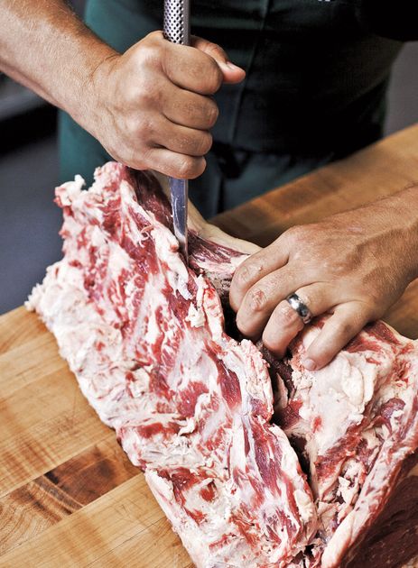 Trim off the chine meat, which is really tasty but a little tough and chewy. This is great for tacos.