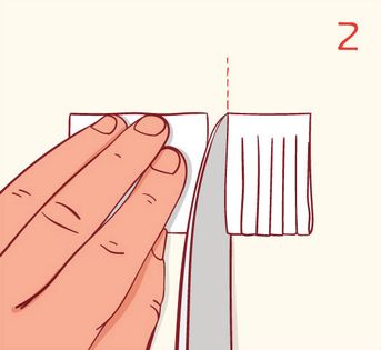 Using a knife, with the folded edge of the sheet closest to you, cut the folded sheet from the bottom, 3/16-inch (5 mm) away from the side edge but leaving up to ¼ inch (6 mm) at the top (see step 1 for reference). So, in other words, don’t cut through fully.