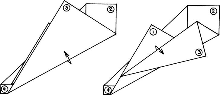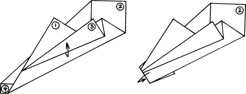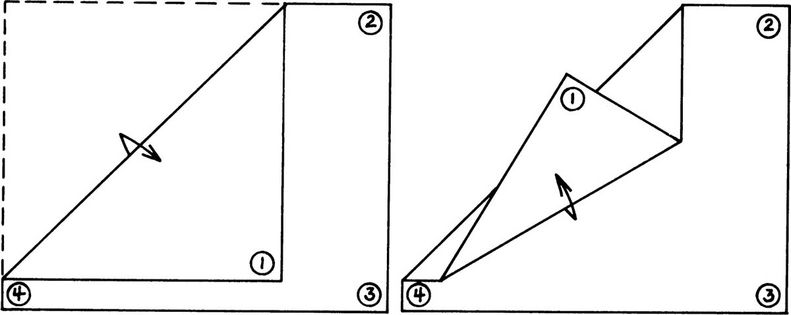 Bring corner 3 up and crease. Fold corner 3 back on itself.