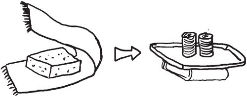 Wrap drained firm tofu in a tea towel/thick layer of paper towels. Place a tray on top and weigh down with tins or a heavy object. Change the paper or tea towel a couple of times until it’s dry.