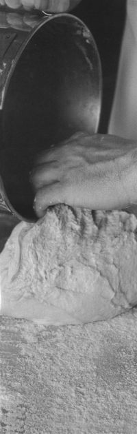 These are one-step breads in the sense that to make the dough, you will simply combine all the ingredients at once rather than creating a sponge separately that’s mixed into the rest of the dough ingredients after it has fermented. I would like to correct a misconception about bread baking right up front: you do not need to beat up your dough. Rather, the gentle mixing method used here assures maximum flavour, because flavour-bearing pigments in the flour don’t dissipate as they do with prolonged mixing. Another misconception about bread baking is that it requires a big time commitment. This is only half right: you do need to be around in order to take care of the various steps, but none of the individual steps is actually time-consuming. Because I’ve designed these recipes using the one-step process, these are breads to bake and eat in one day, unlike their artisan cousins, which can take four or five days to create.