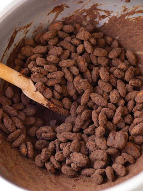 To Ensure the Desirable thin coating of caramel, only a relatively small amount of sugar is used when making dragées. The larger the nut, the less sugar you should use. Typical proportions by weight vary from 3 parts nuts to 1 part sugar for small nuts to 6 parts nuts to 1 part sugar for large nuts. The nuts used for dragées should not be toasted, as they will roast as the sugar caramelizes.