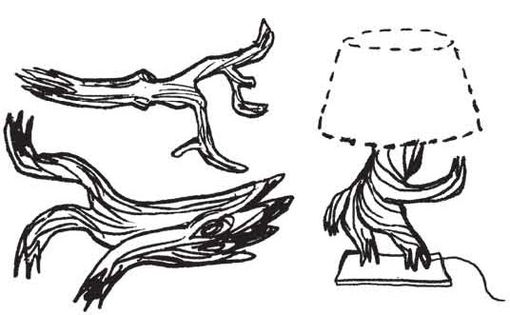 some driftwood (keep the best-looking piece to make a lamp base)