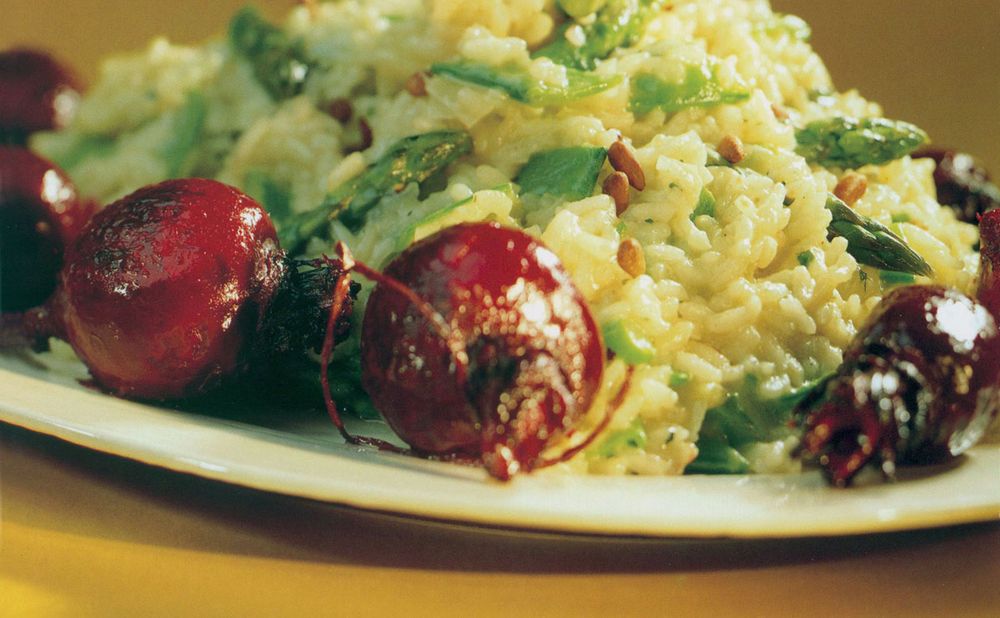 Two risotto memories invariably come to me when I take out a bag of arborio rice. The first is of a fellow Irish tourist in a hotel dining room on the last night of a package holiday in Sicily, a middle-aged well-off sort, travelled and fond of his food: ‘... and what’s more, the risotto was terrible, for God’s sake, it was wet as soup’. Maybe the risotto was poor, but the waiter’s eyes argued back that signor didn’t know what he was talking about, and I remember wishing I had eaten the risotto so I would know both sides of the misunderstanding. The other is a book I seem to have mislaid, by Burton Anderson, about the author’s visits to food artisans in Italy. He talked first to rice growers who spoke of good and bad vintage paddy fields, years and the merits and limitations of the many different risotto rices, not to mention the thousands of different varieties worldwide (most of which they, naturally, dismiss as not worth the trouble). Then he spoke to some of the best people cooking these rices in Italy. It’s a mindboggling chapter that could easily make you give up altogether until you had your own paddy held, but somehow I came out of it with a strong sense of how I liked and wanted to cook risotto - a bit like your man there, but that other fellow has a point too. They didn’t agree on much but you could tell they all made great risotto!