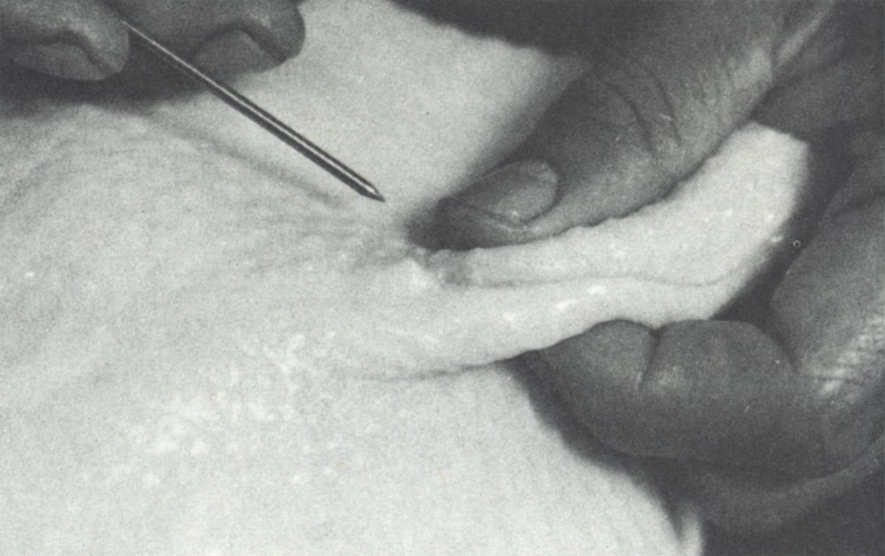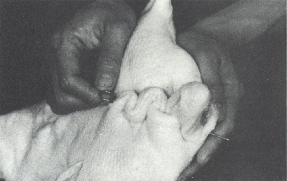 We use this technique of sealing the cavity of a chicken or duck to entrap internal marinades, secure stuffings, and keep air from escaping in preparations such as Peking Duck.